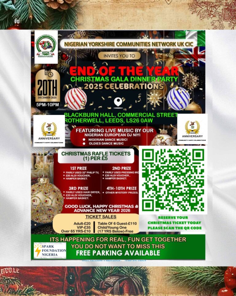 The Nigerian Yorkshire Communities Network UK CIC(NYCN) was founded to bridge the gap between Nigerian families, students and businesses in Yorkshire. Over the years the communication gap in domestic and business relationship among Nigerians in Yorkshire has widened and in order to bridge this gap…(continue)